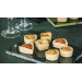 Assortiment van mini kuipjes van kruimeldeeg in 3 verschillende vormen en smaken: 40 ronde kuipjes 'quiche Lorraine', 40 driehoekige kuipjes met een saus van tomaat, basilicum en mozzarella, 40 vierkante kuipjes met Emmentaler, Beaufort en Cantal kaas.