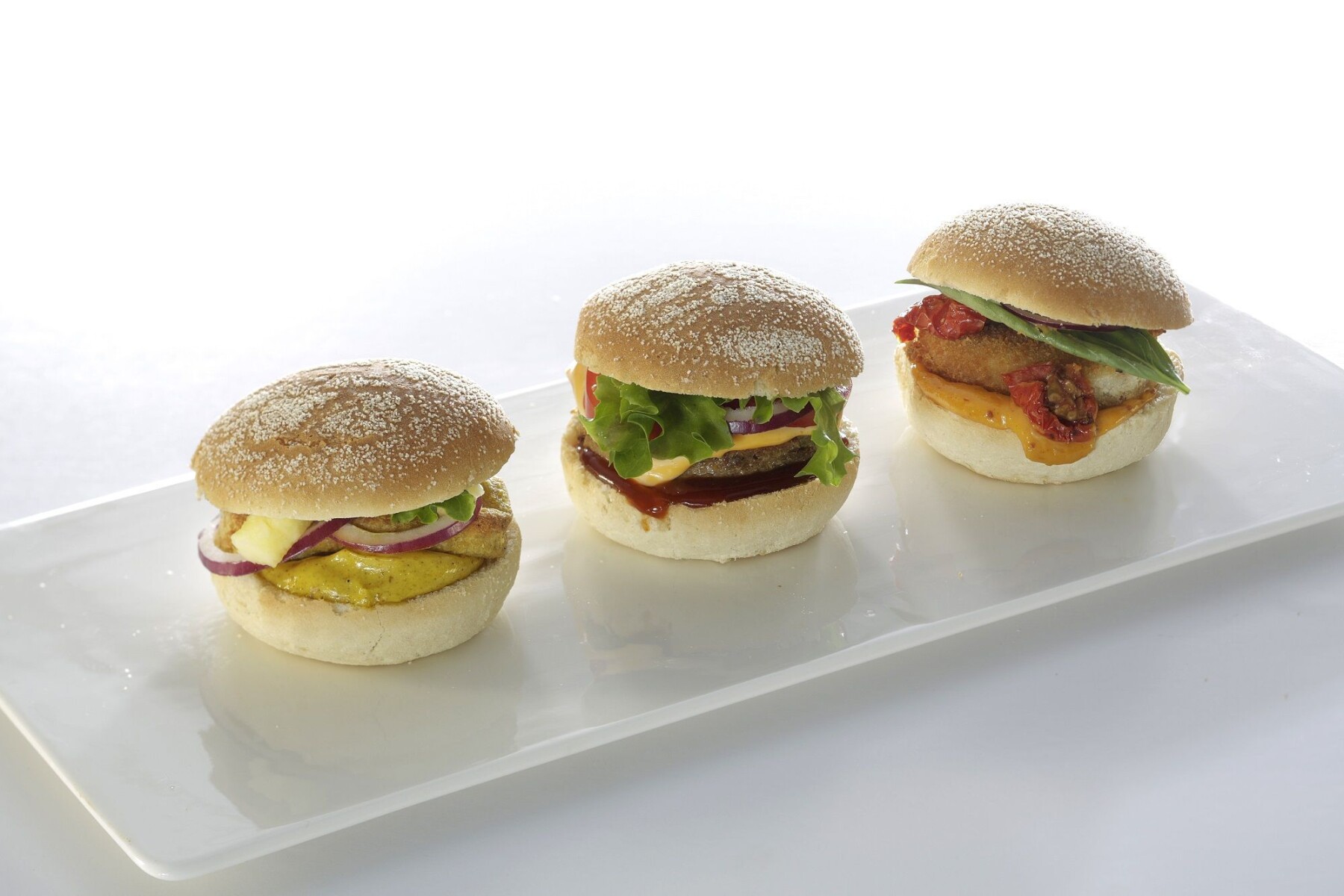 Mini hamburger bun met een topping van tarwevlokken. Enkel te ontdooien voor gebruik. De bun heeft een diameter van 6 cm en een gewicht van 27 gram.