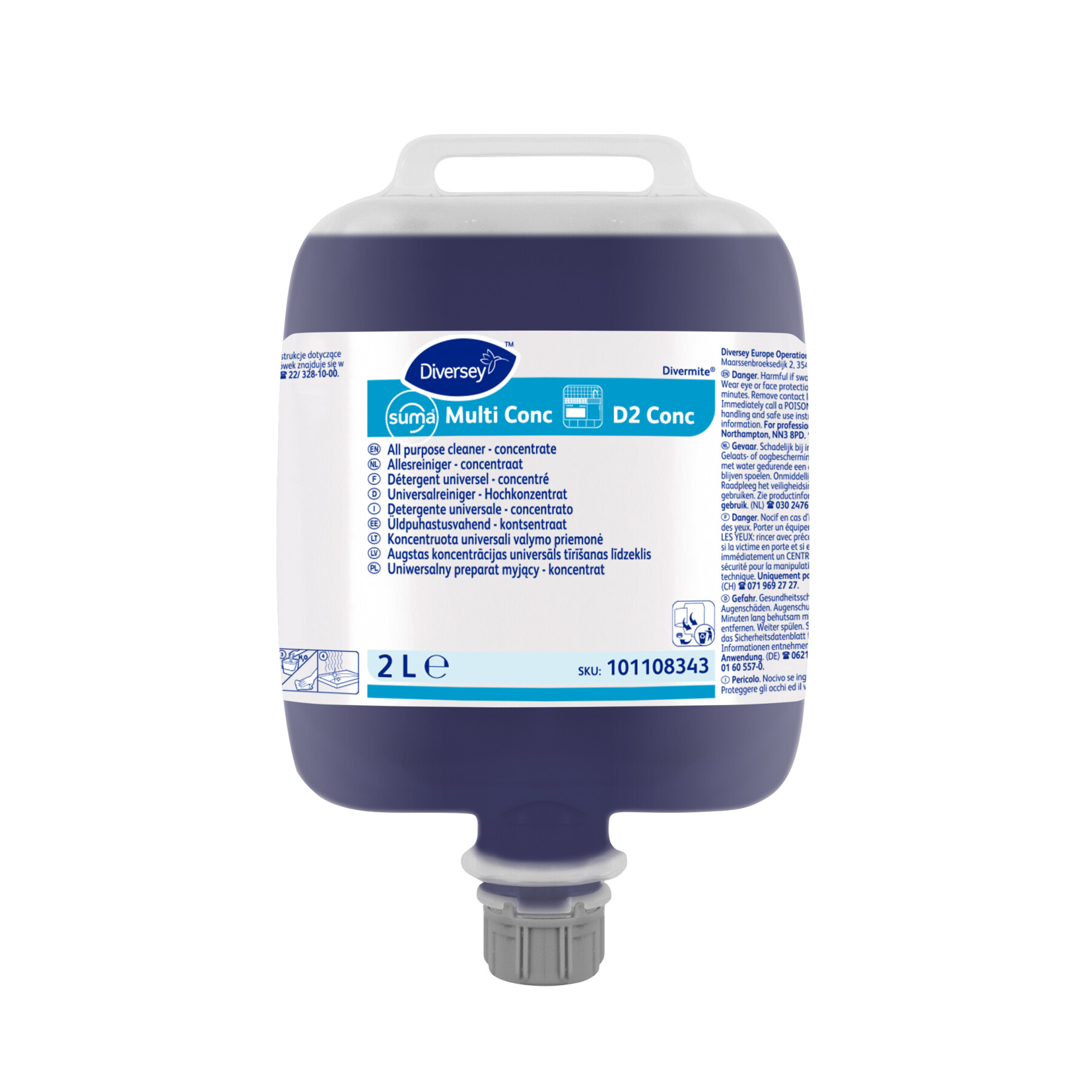 Description : Suma Multi-conc D2 conc is a highly concentrated detergent for cleaning of hard surfaces in food premises, including floors, walls, doors, ceilings and general equipment