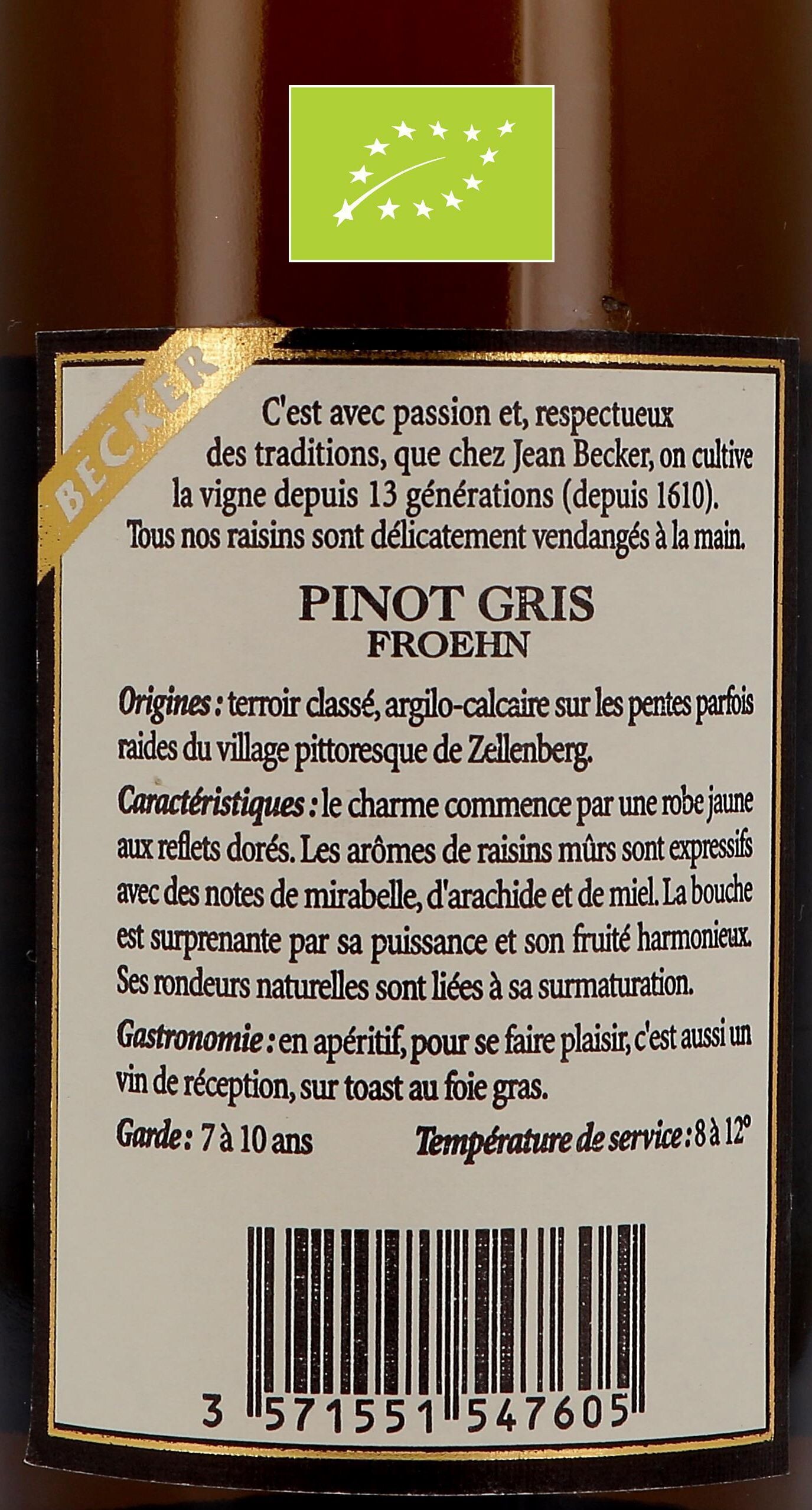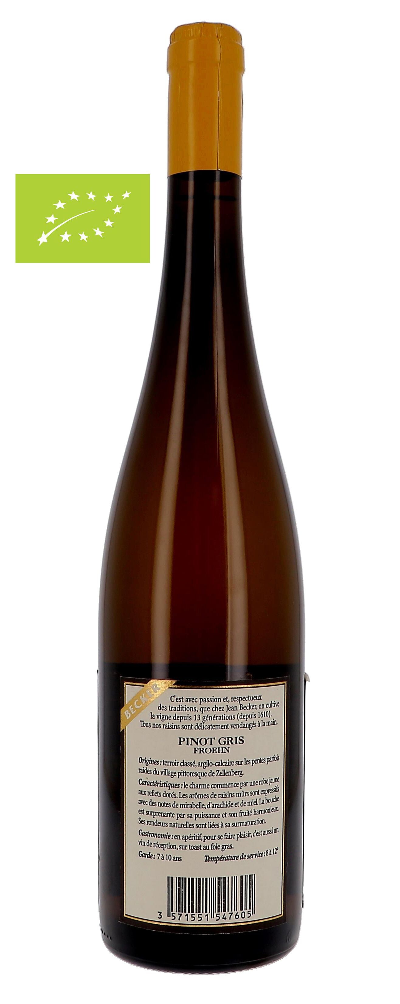 Pinot Gris Grand Cru Froehn 75cl Domaine Jean Becker - Bio - Agriculture France