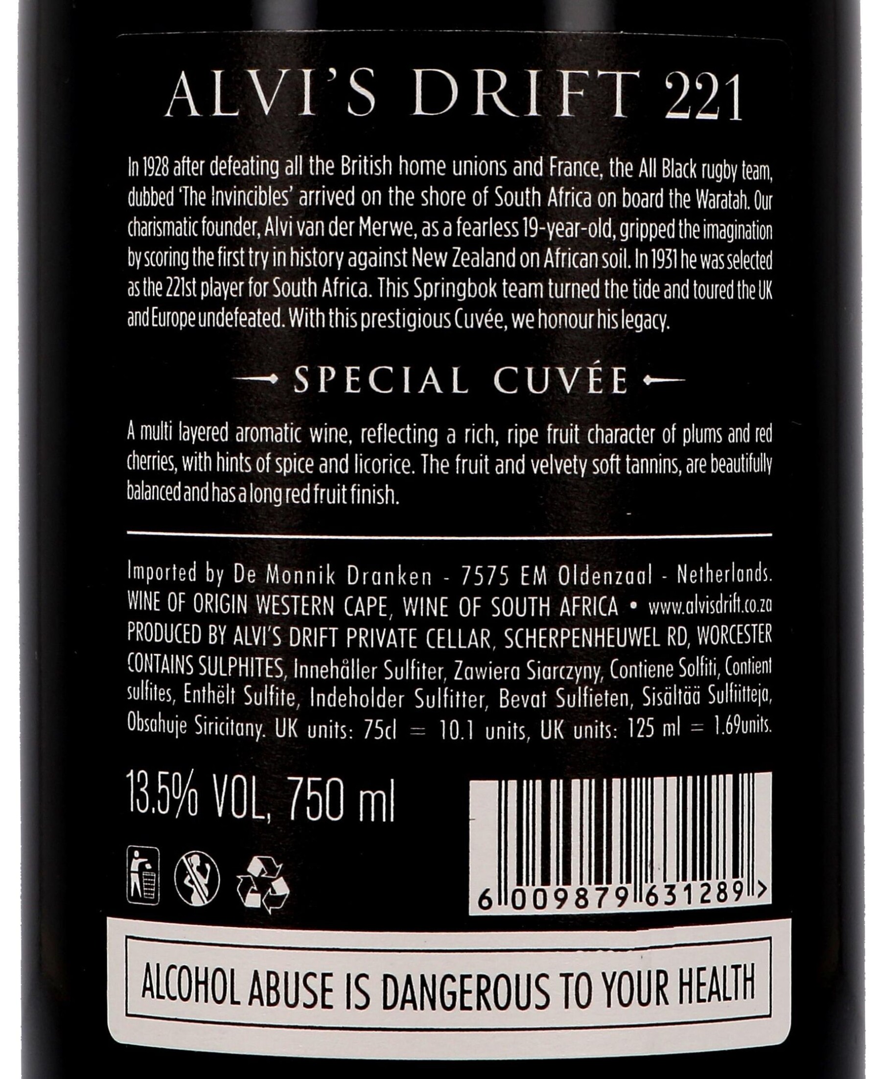 221 Special Cuvée 75cl 2017 Alvi's Drift - Breede River Valley - Afrique du Sud - Informations complémentaires