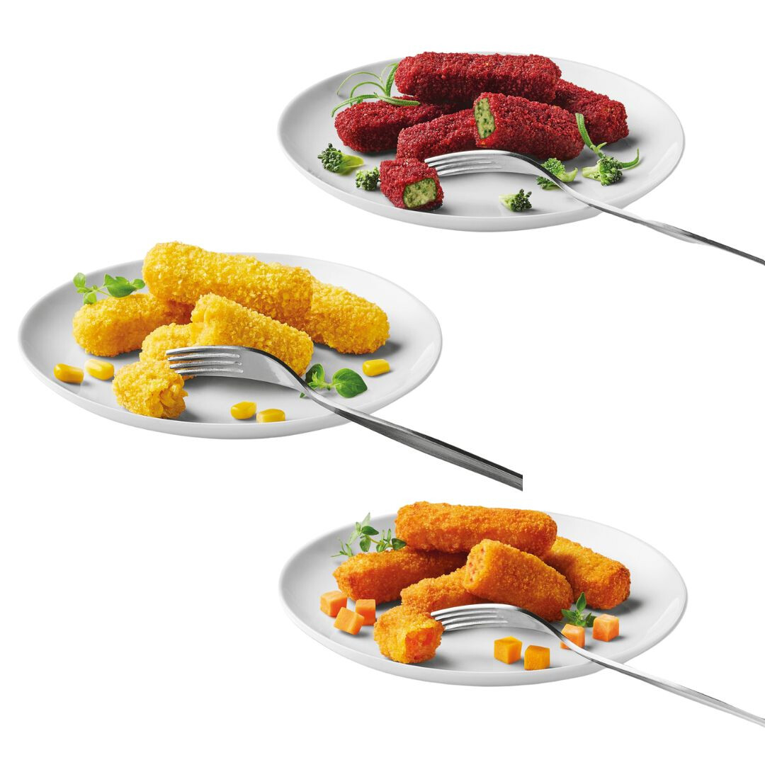 Nos fingers de légumes sont indispensables dans votre cuisine. Découvrez les sticks de maïs dorés, les sticks de légumes orange aux carottes, butternut et patates douces, et enfin les sticks rouges surprenantes aux brocolis, qui peuvent être servis séparément ou ensemble. La combinaison de leurs teintes jaune, orange et rouge apporte immédiatement de la couleur à votre planche à tapas, à votre accompagnement ou à votre plat principal. Servez-les comme alternative aux frites, comme garniture sur une salade ou dans un wrap. Grâce à leur garniturede légumes et à leur croûte super croustillante, les fingers de légumes véganes plaisent particulièrement aux jeunes et moins jeunes. On parie que les enfants aimeront découvrir de nouvelles saveurs de légumes de cette manière ?!