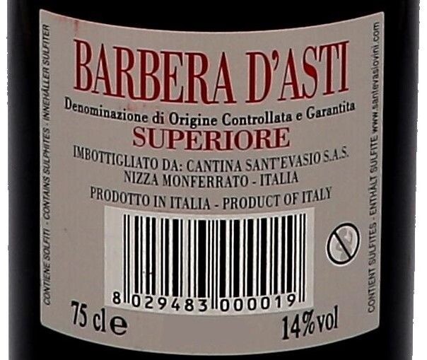 Barbera d'Asti Superiori 75cl Sant'Evasio - Italie - Informations complémentaires