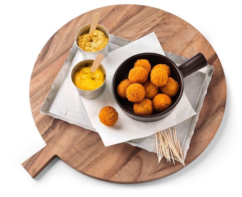 De Rundvleesbitterballen Klassiek bevat 100% draadjesrundvlees. Heeft een overheerlijke klassieke smaakbeleving met een krokante bite. Hij is royaal in gewicht met 23 gram en heeft een ambachtelijke uitstraling. Deze klassieke draadjesvleesbitterbal is onmisbaar in je assortiment en bij je borrelgarnituur!