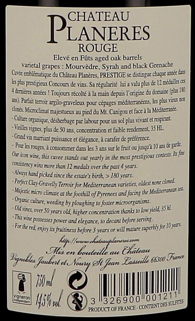 Chateau Planeres Prestige rouge 75cl Cotes du Roussillon Les Aspres