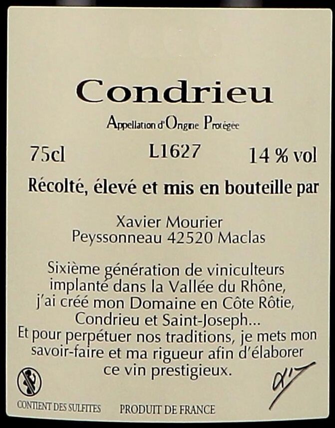 Condrieu Résurgence Domaine de Pierre Blanche 75cl 2015 Xavier Mourier - Informations complémentaires