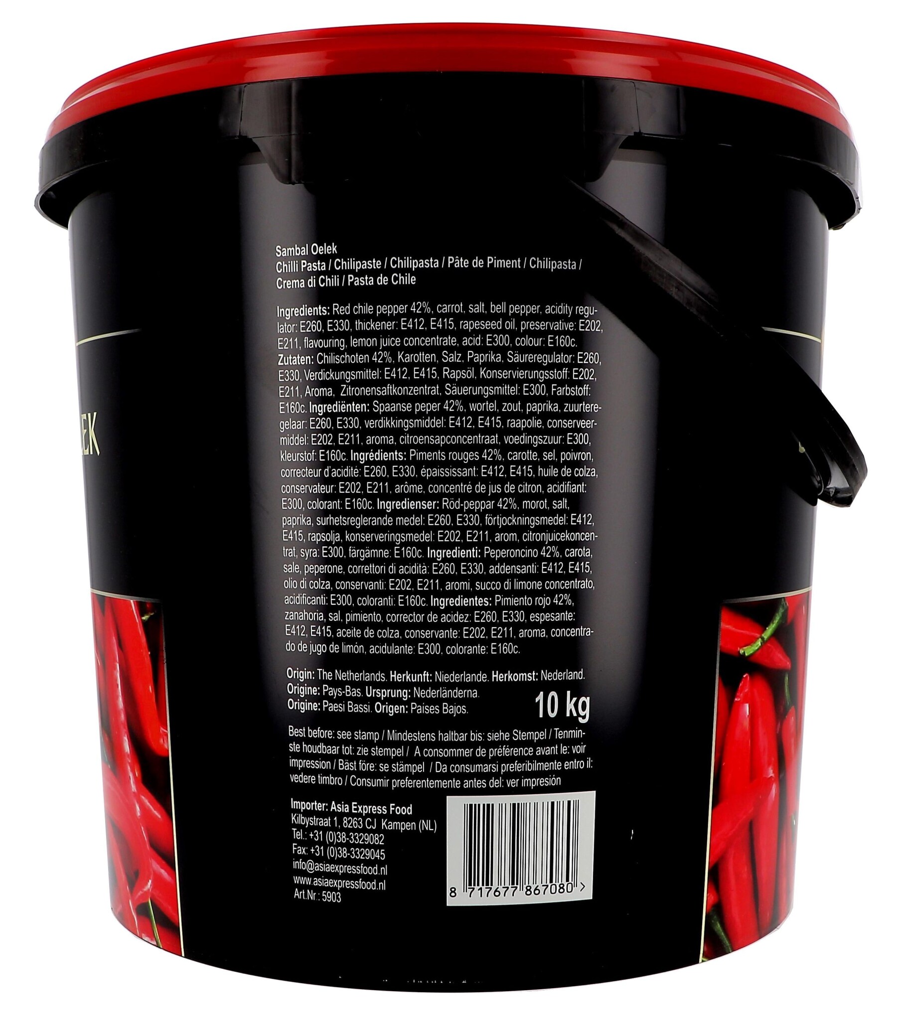 Ingrediënten : Spaanse peper 42%, wortel, zout, paprika, zuurteregelaars: E260, E330, verdikkingsmiddelen: E412, E415, raapolie, conserveermiddelen: E202, E211, aroma, citroensapconcentraat, voedingszuur: E300, kleurstof: paprika-Extract E160c.
