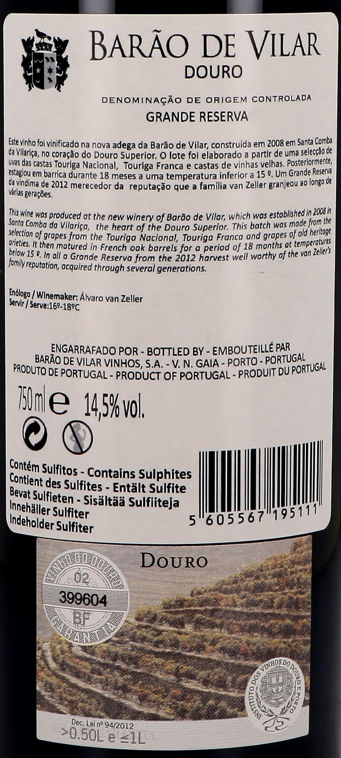 Barao De Vilar Tinto Grande Reserva 75cl D.O.C. Douro 2012 rouge Portugal