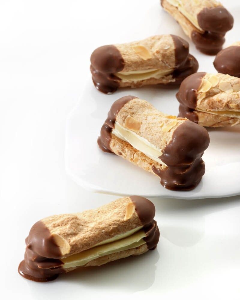 Het bekende bokkenpootje, gevuld met een verse vanille crème en afgewerkt met Belgische chocolade.