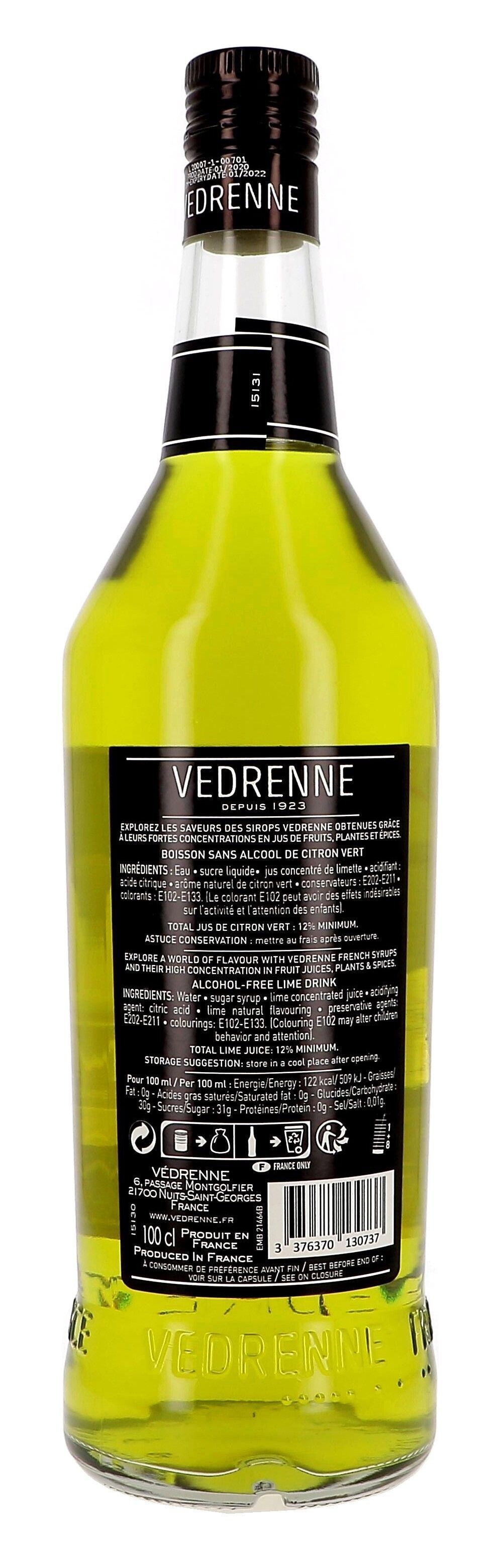 Vedrenne Sirop de Citron Vert 1L 0% - Informations complémentaires