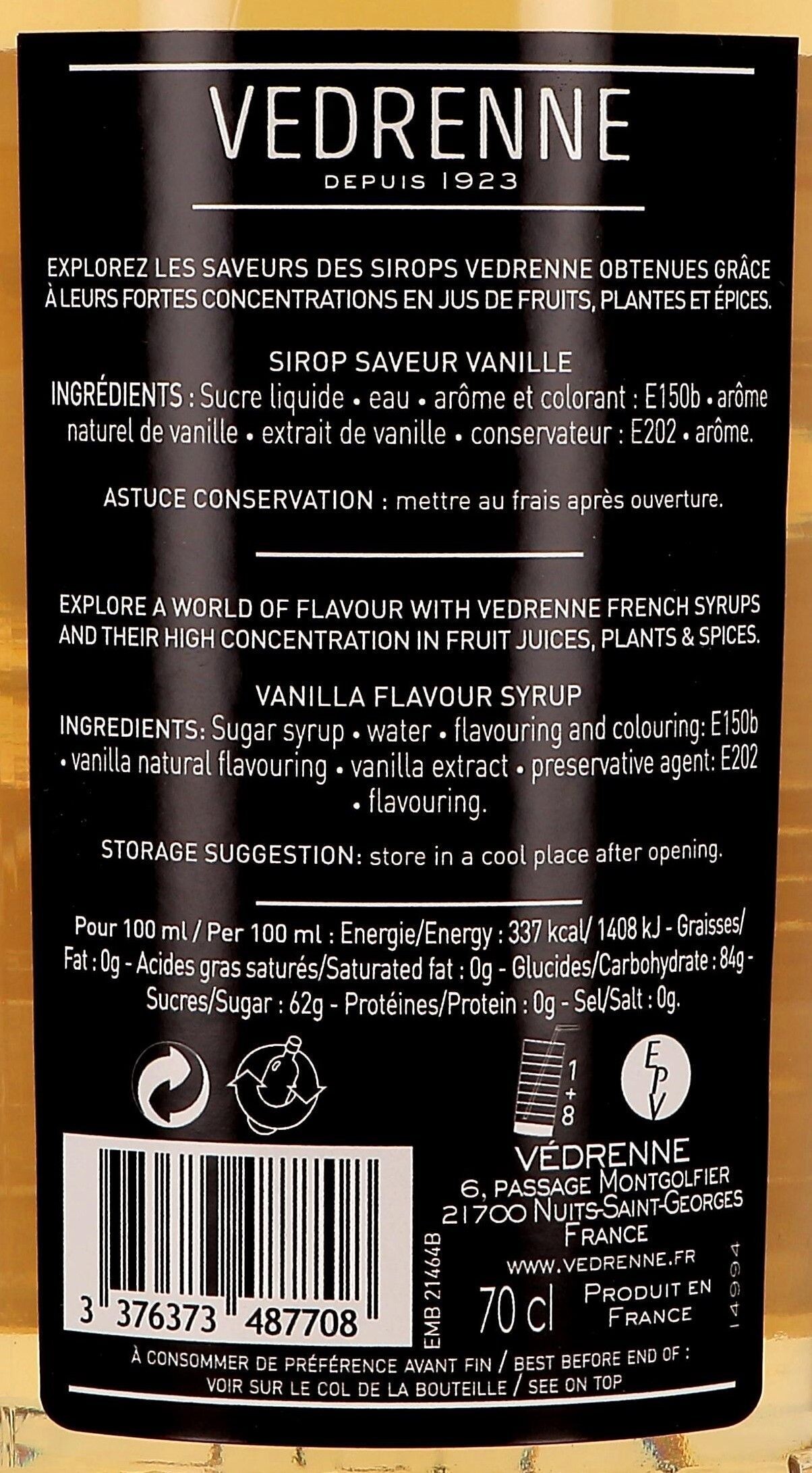 Vedrenne Sirop Vanille 70cl 0% - Informations complémentaires