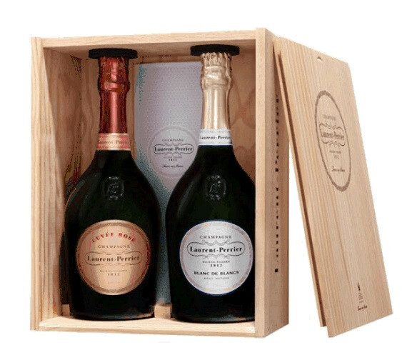 Champagne Laurent Perrier Cuvée Rosé 75cl & Blancs de Blancs Brut Nature 75cl Caisse Bois