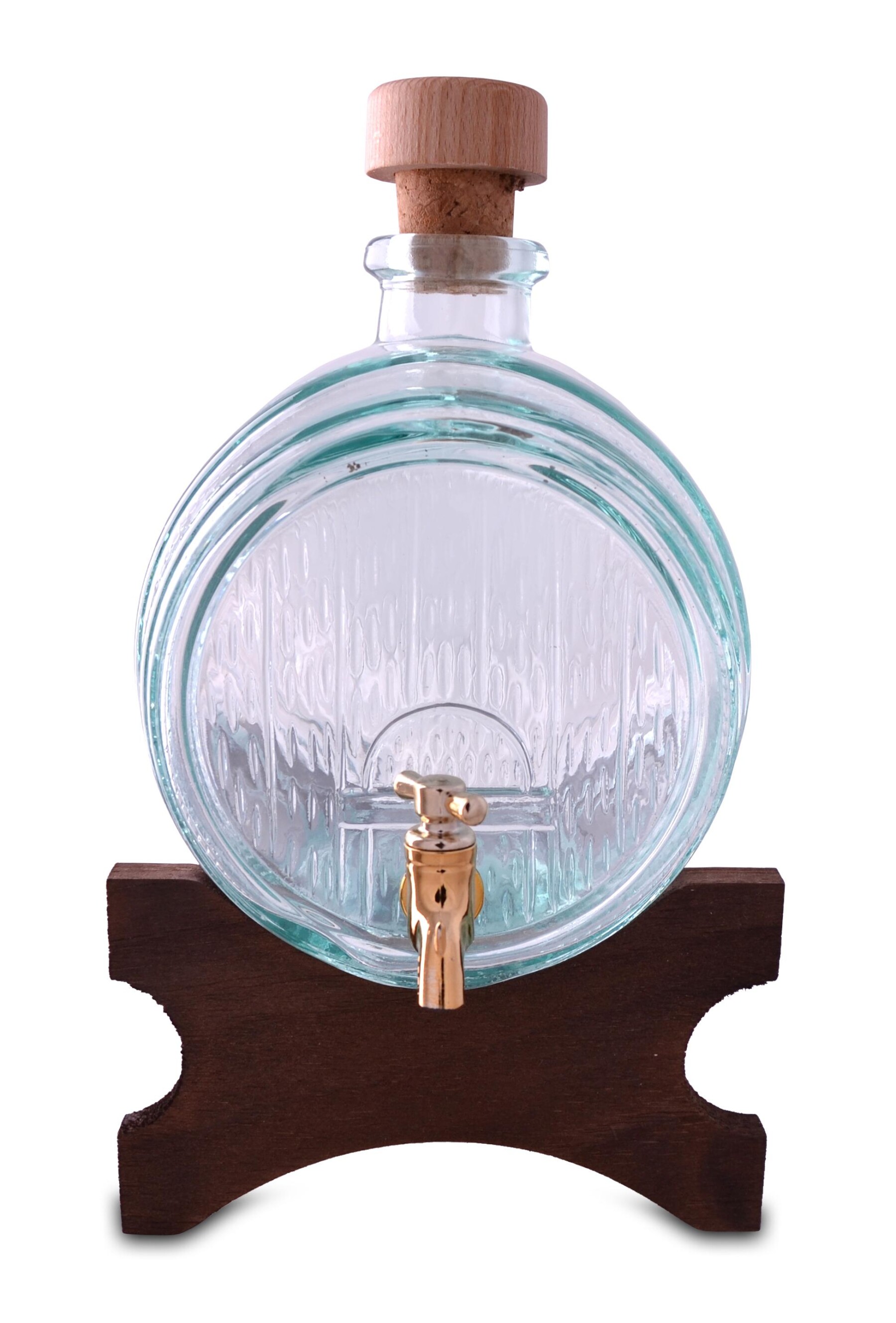 Fut en verre pour porto / vin 1.8L + support bois - Informations complémentaires
