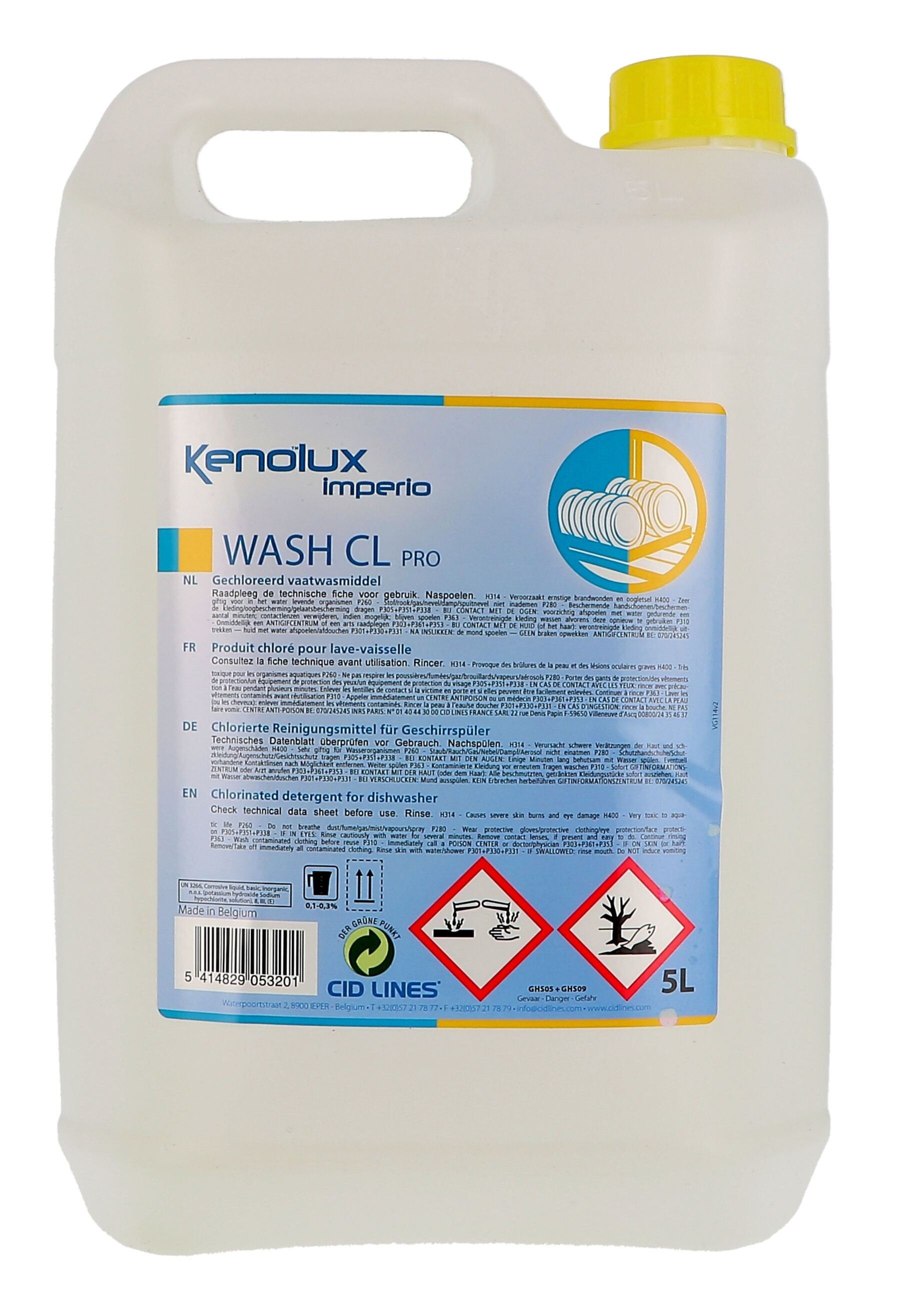 Kenolux Imperio Wash CL Pro 5L liquide pour lave-vaisselle chloré Cid Lines