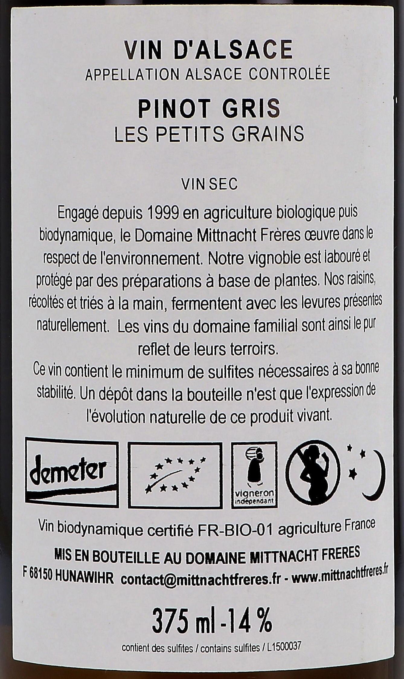 Pinot Gris Les Petits Grains 37.5cl Domaine Mittnacht Frères - Informations complémentaires