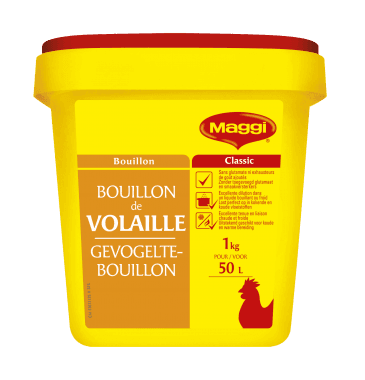 MAGGI Authentieke Gevogeltebouillon is een bouillonpoeder met een authentieke smaak. Deze rijke gevogeltebouillon bevat geen toevoegde smaakversterkers. De bouillon is tevens vrij van verzadigde vetzuren en bevat een zeer laag vetgehalte. De MAGGI Authentieke Gevogeltebouillon is zowel warm als koud te bereiden, bijvoorbeeld in soepen, sauzen of ragouts.