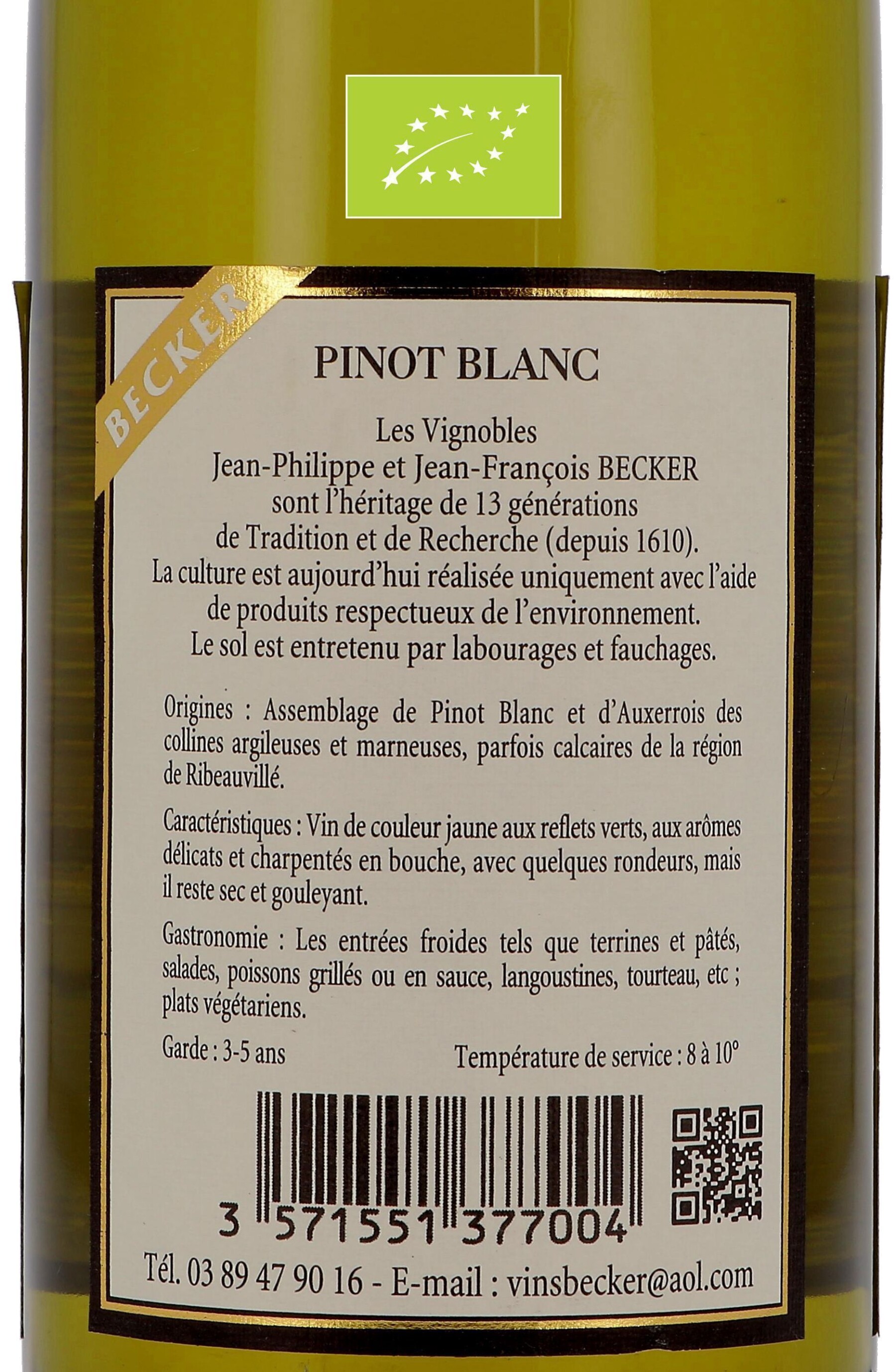 Pinot Blanc 75cl Domaine Jean Becker - Bio