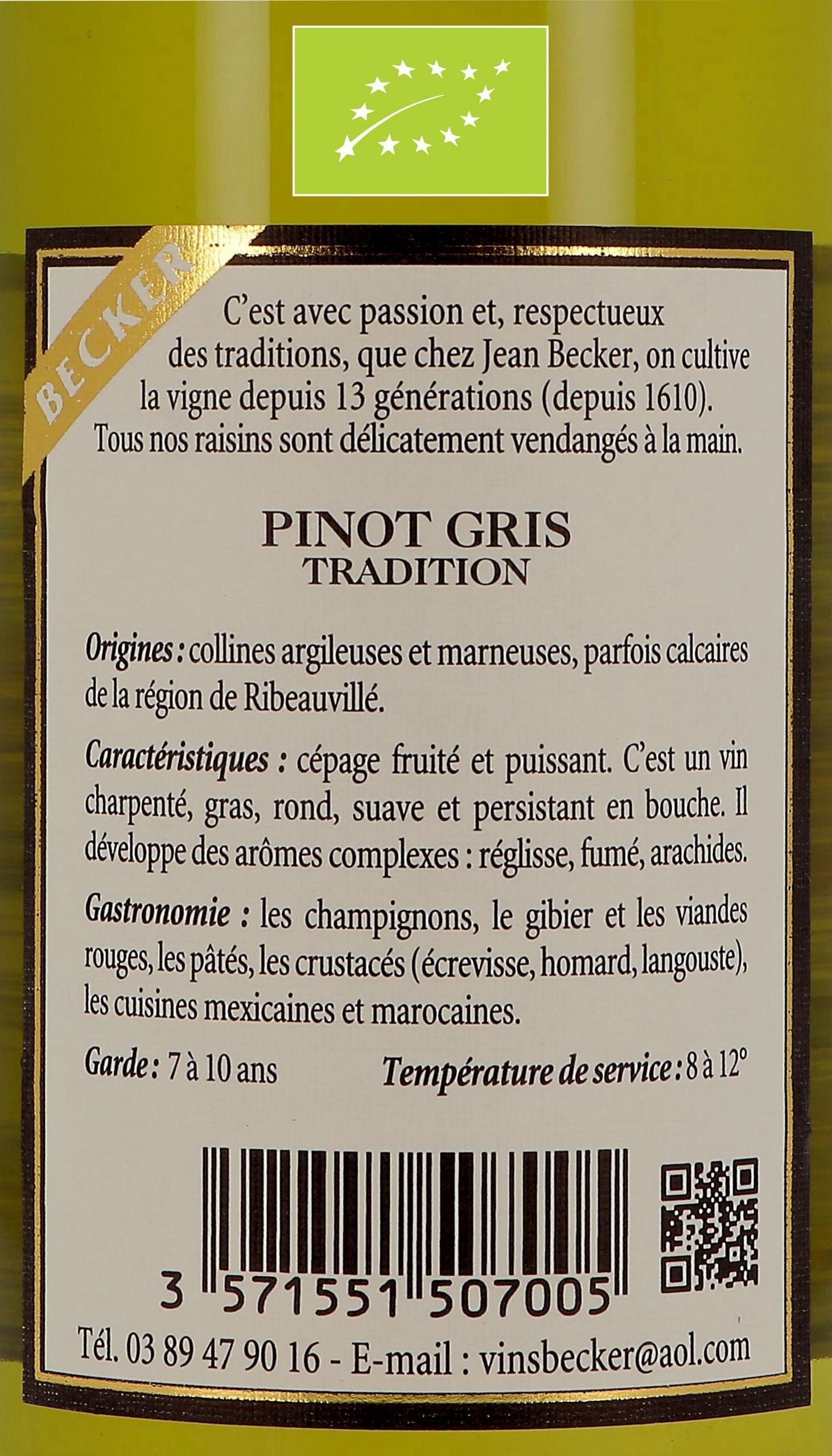 Pinot Gris 75cl Domaine Jean Becker - Bio