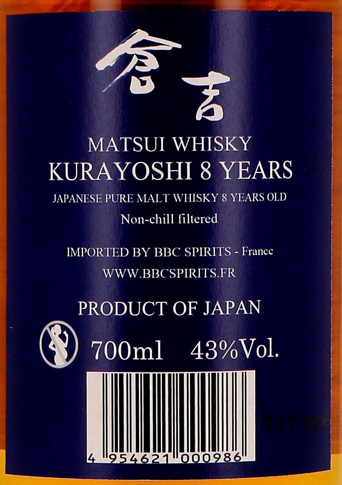 The Kurayoshi 8 Years 70cl 43% Japanese Pure Malt Whisky