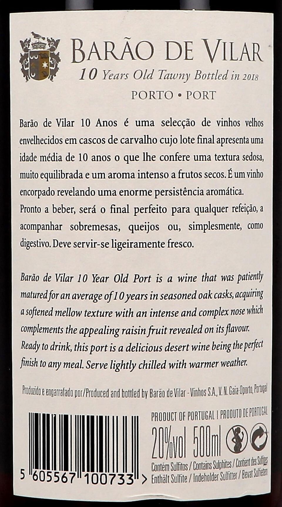 Porto Barao de Vilar 10 Years Old Tawny 50cl 20% - Extra informatie