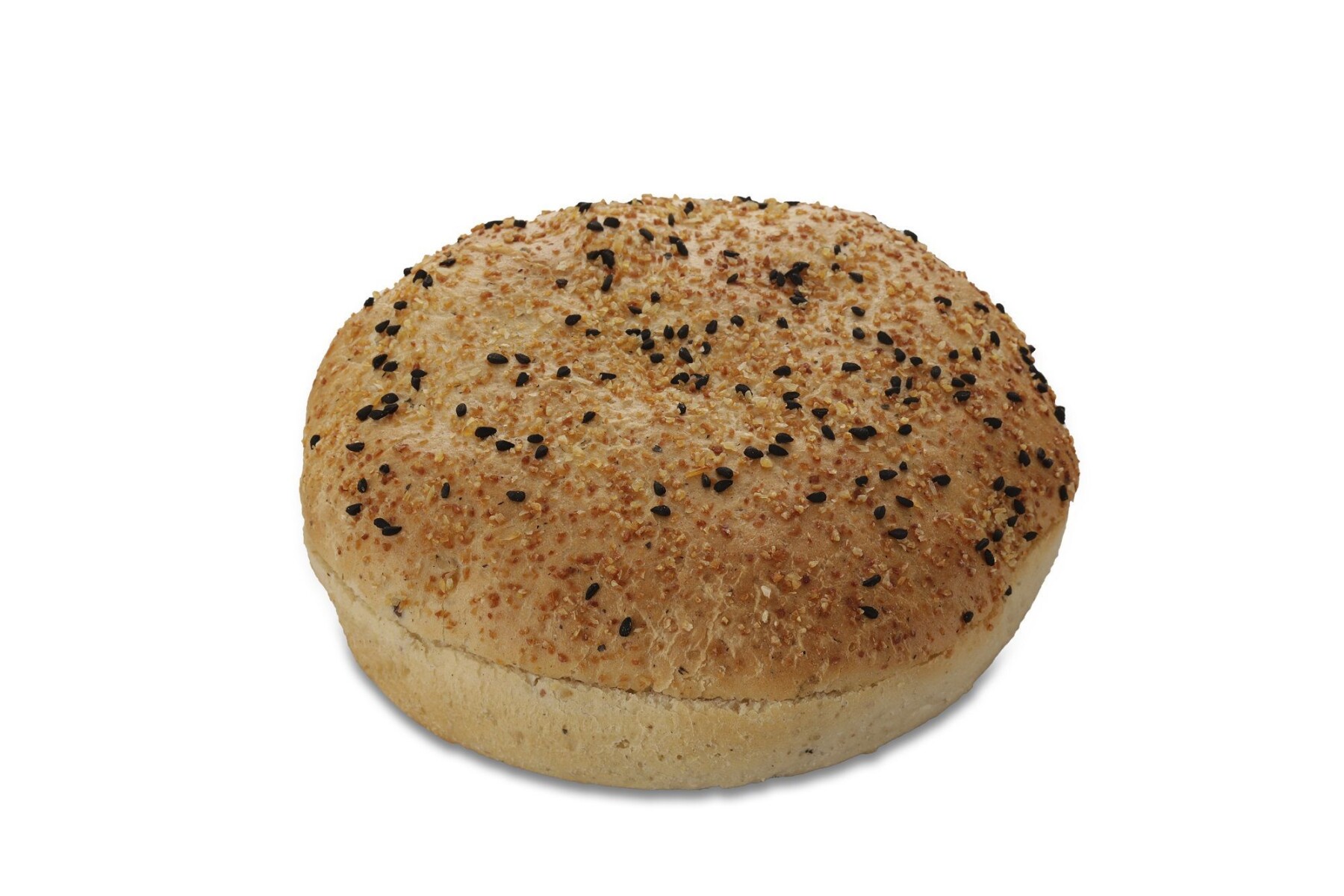 Een lekker pittige hamburger bun die een topping heeft van zaadjes voor een mooi uiterlijk. De bun heeft een diameter van 11,5 cm en een gewicht van 90 gram. Reeds voorgesneden en hoeft enkel ontdooid te worden voor gebruik.