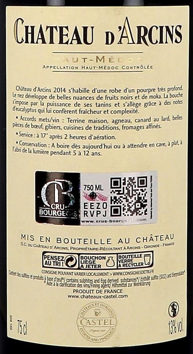 Chateau d'Arcins 75cl 2021 Haut-Medoc Cru Bourgeois - Extra informatie