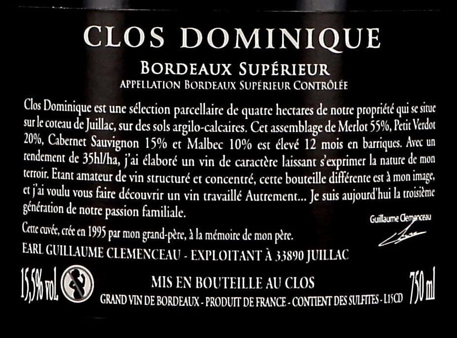 Clos Dominique 75cl 2015 Bordeaux Superieur