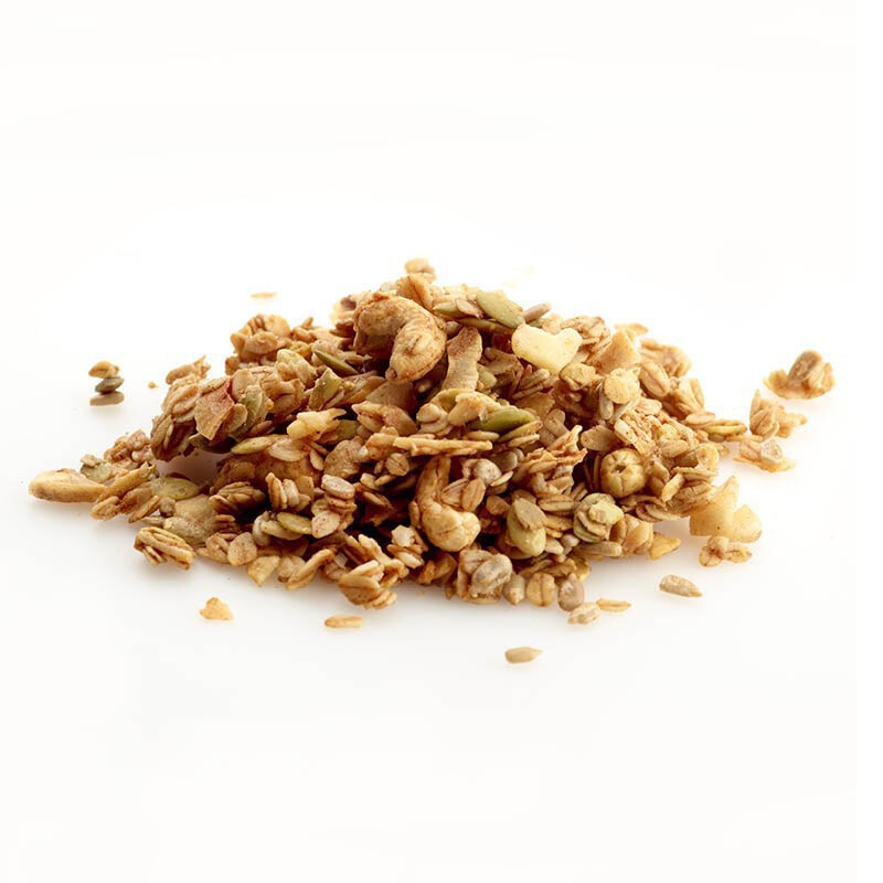 Granola werd een honderdtal jaar geleden in New York bedacht om havermout aantrekkelijker te maken. Het is een krokant gebakken ontbijtgraan op basis van havervlokken. Deze granola’s worden met de hand gemaakt om de lichte krokante textuur te garanderen. De ingrediënten zijn van biologische oorsprong en de granola’s zijn beperkt gezoet met uitsluitend natuurlijke zoetstoffen en zonder suikers.