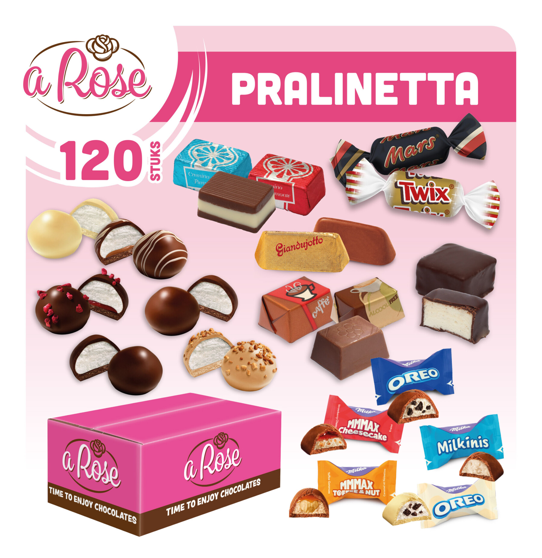Mix van pralines waaronder Oreo , Mini Mars , Mini Twix , Milkinis , MMMax , Giandujotto etc